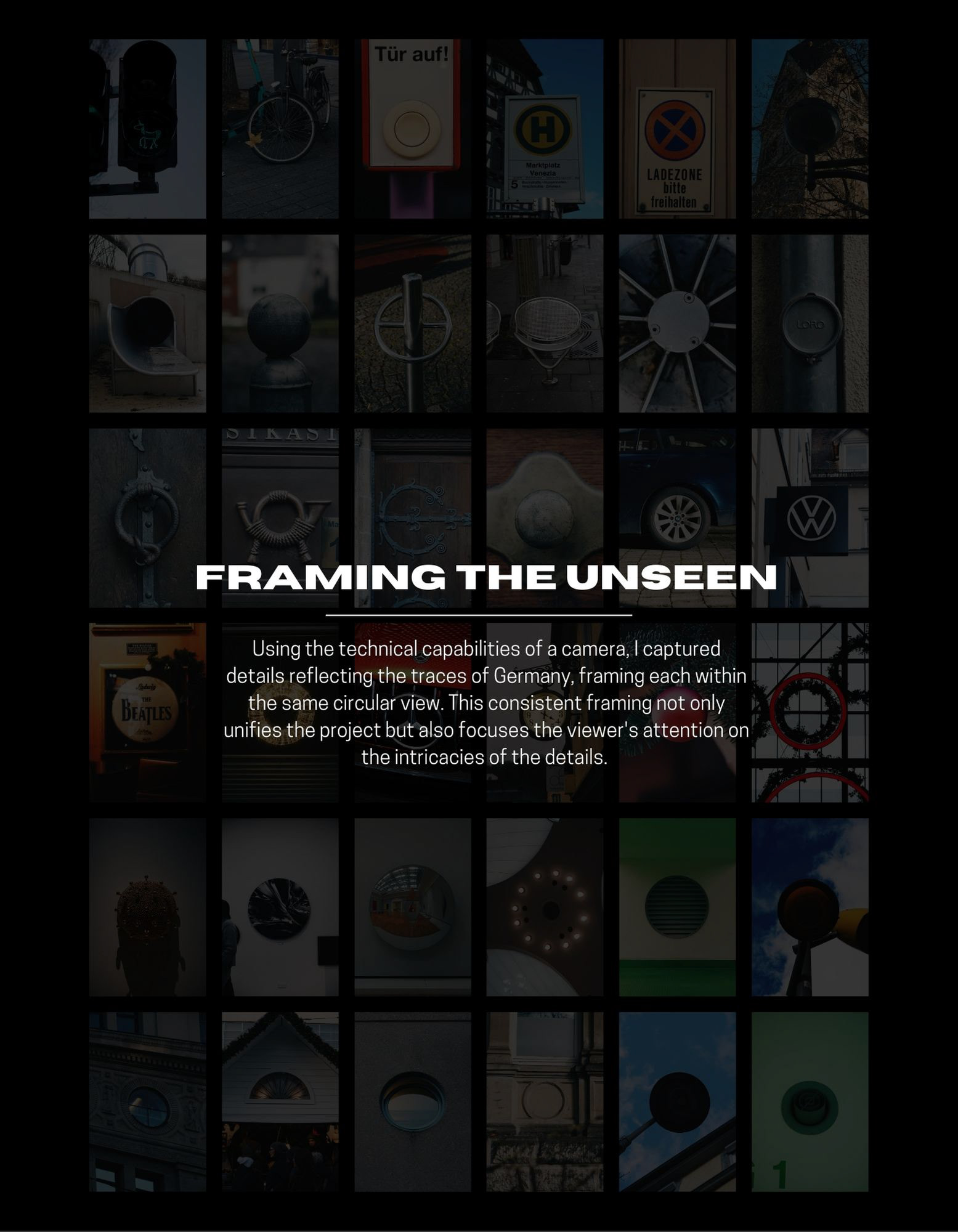 A photography project capturing Germany’s cultural identity through circular forms, framing traditional motifs and everyday objects as visual symbols.